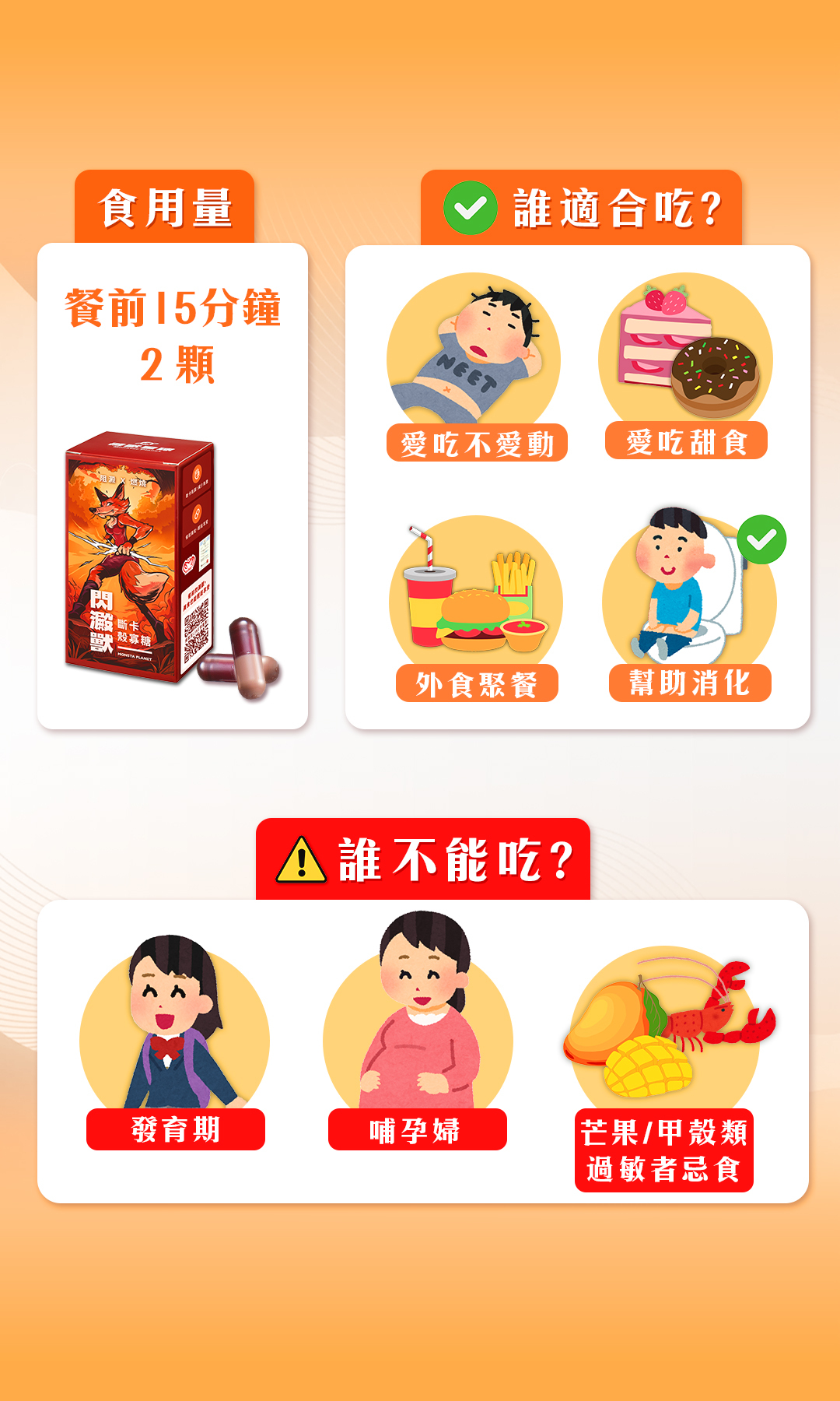 食用方式:餐前15分鐘2顆,每日2-3次